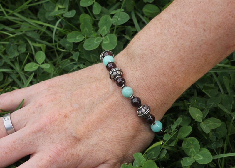 Материал - серебро 925 пробы, натуральный амазонит, натуральный гранат