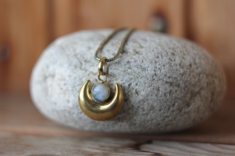 Подвеска из латуни Месяц с лунным камнем